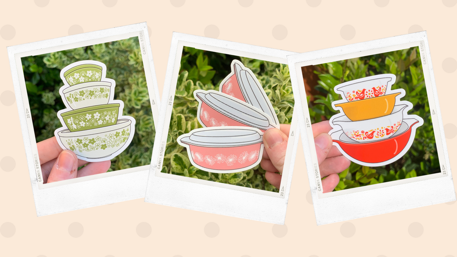 All the fun of vintage pyrex, in stickers, magnets, pins, and keychains!...