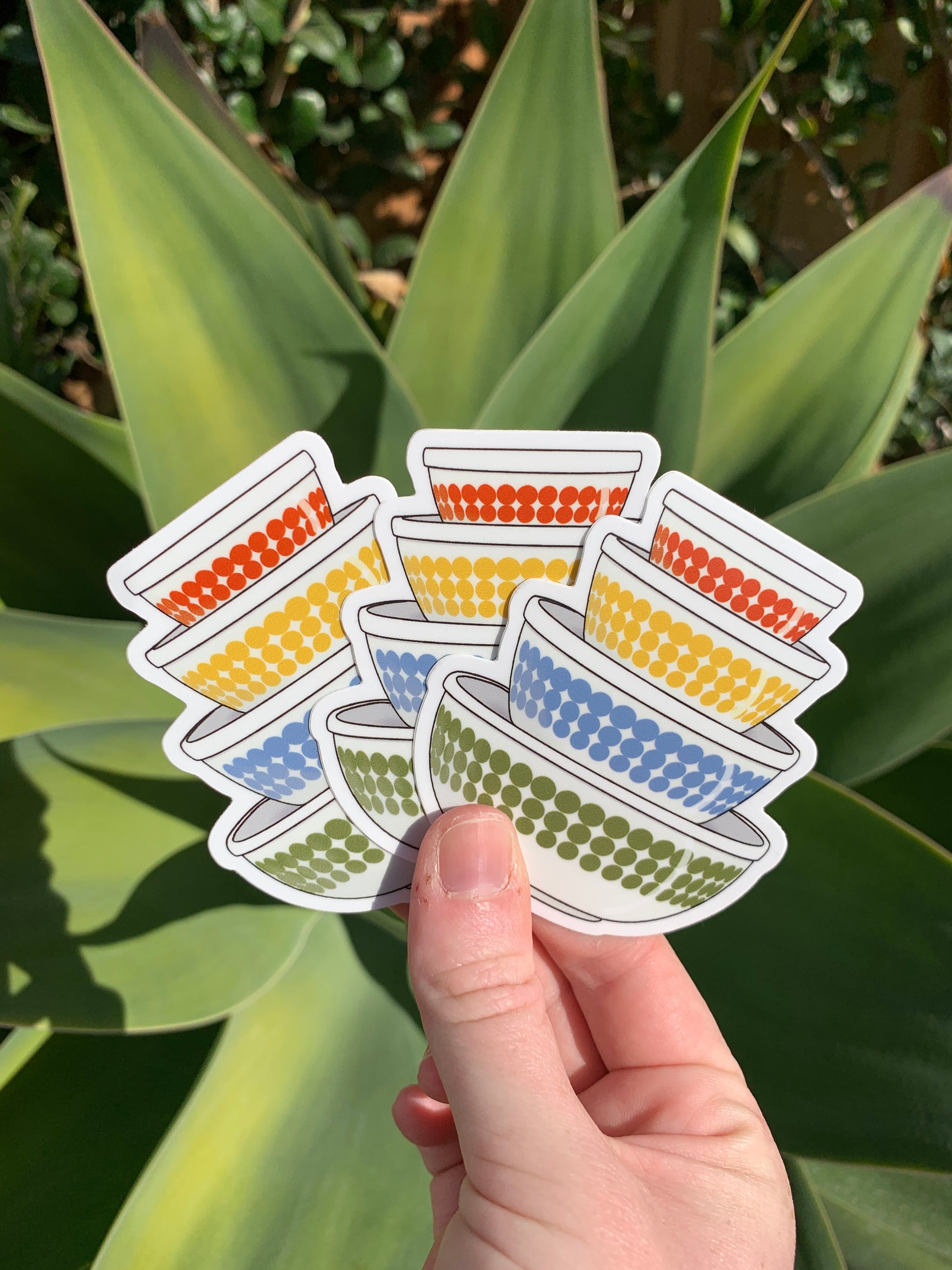 New Dots Vintage Pyrex Bowls Sticker/Magnet