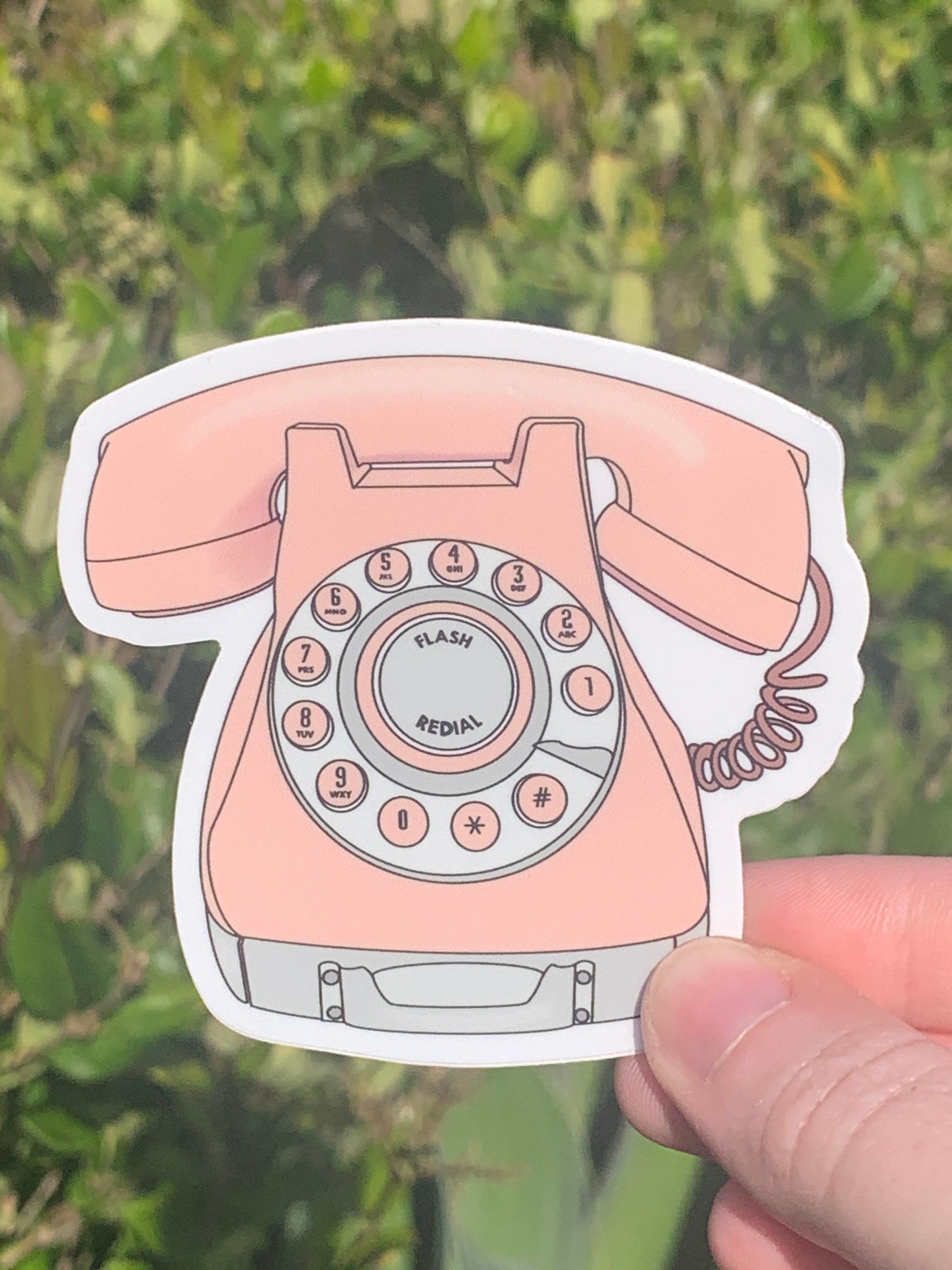 Custom-designed Vintage Pink Telephone Sticker and Magnet! These durable stickers are great for the outdoors or indoors, they are fun, flexible, and vibrant. A great addition to any laptop, water bottle, or camper! If you are an antique loving woman or a glamping gal, these stickers bring the fun of vintage wherever you go!
