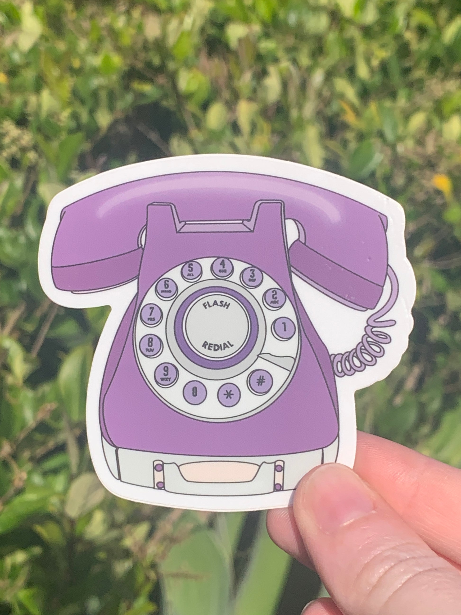 Custom-designed Vintage Purple Telephone Sticker and Magnet! These durable stickers are great for the outdoors or indoors, they are fun, flexible, and vibrant. A great addition to any laptop, water bottle, or camper! If you are an antique loving woman or a glamping gal, these stickers bring the fun of vintage wherever you go!