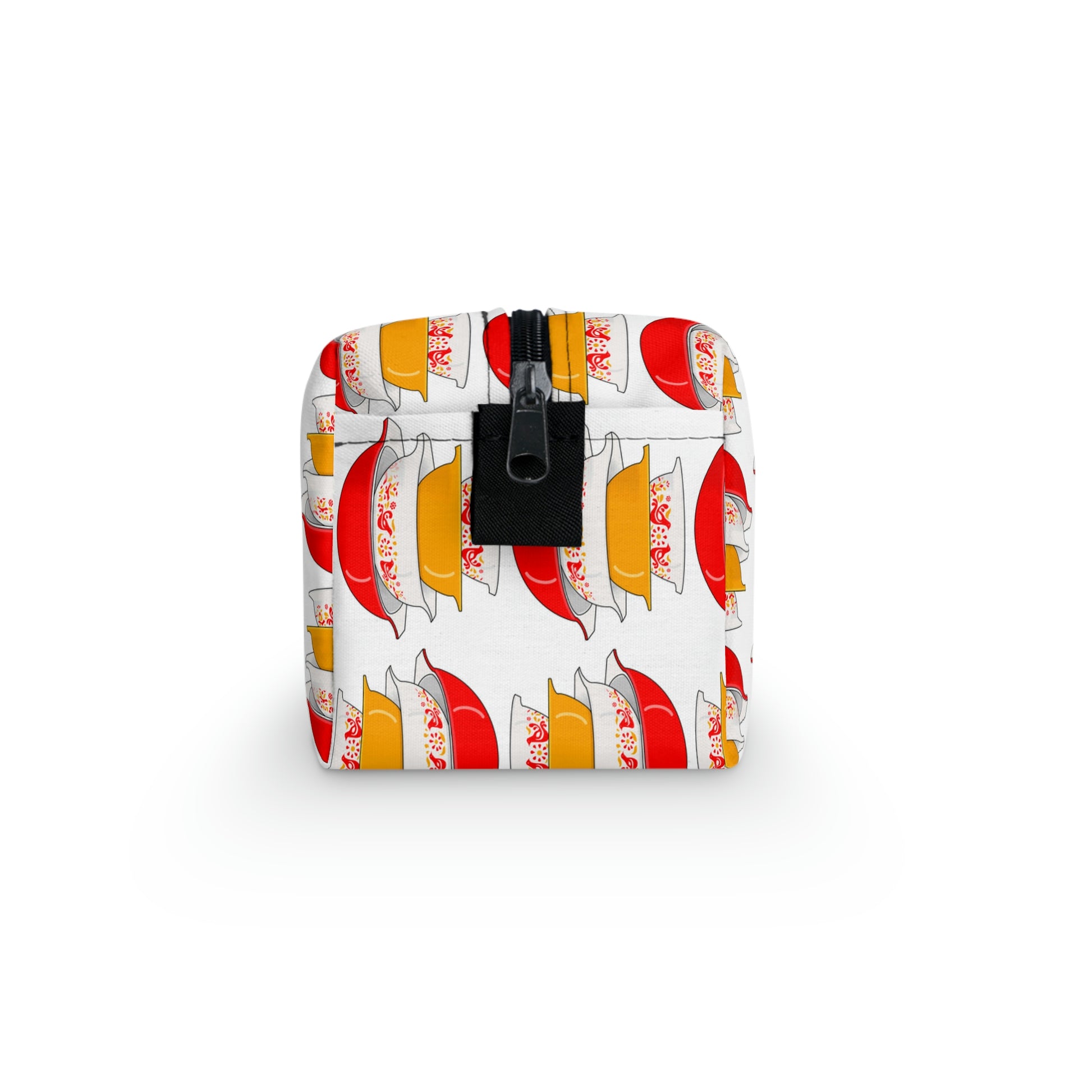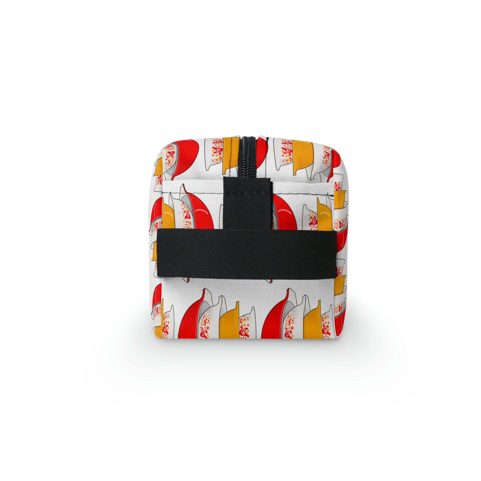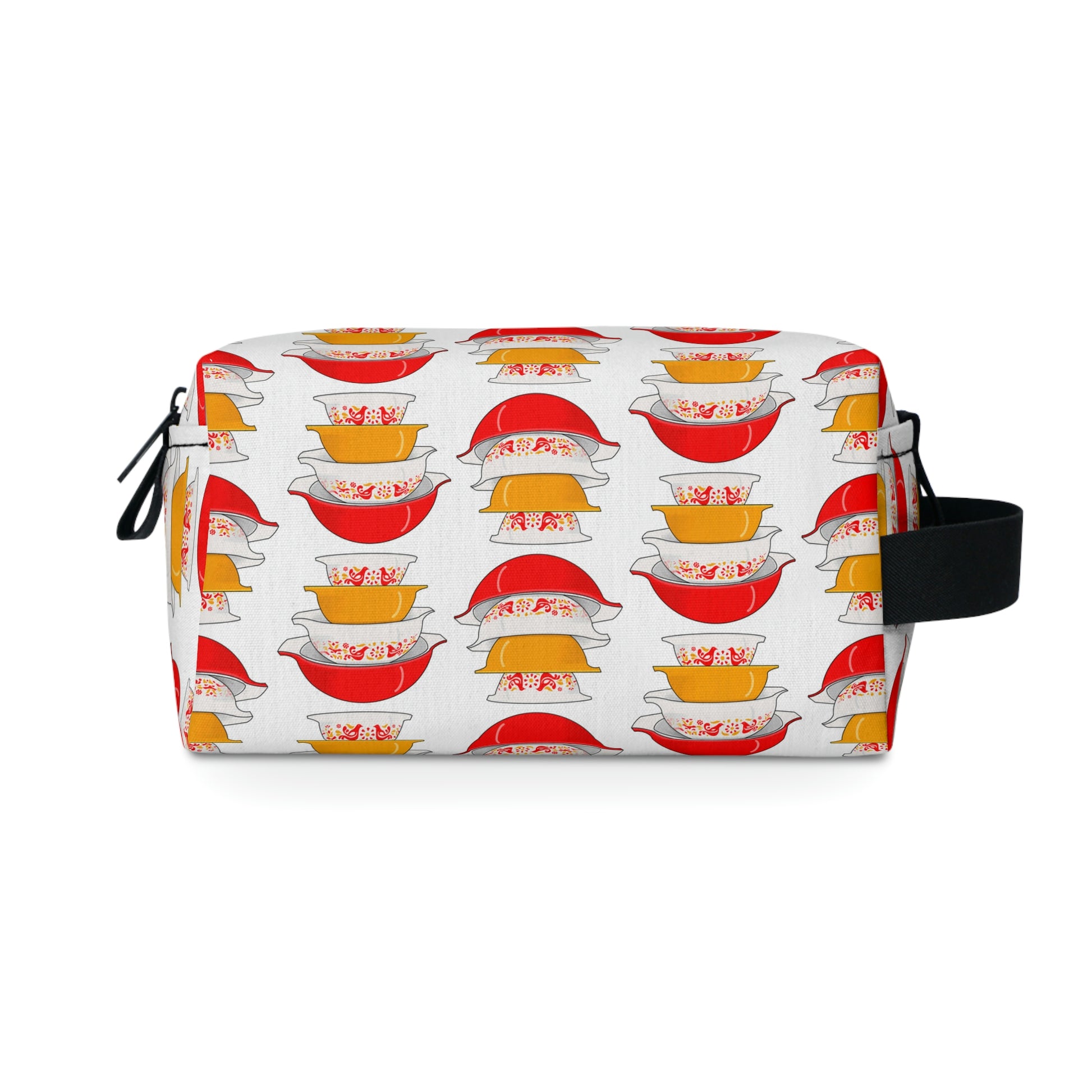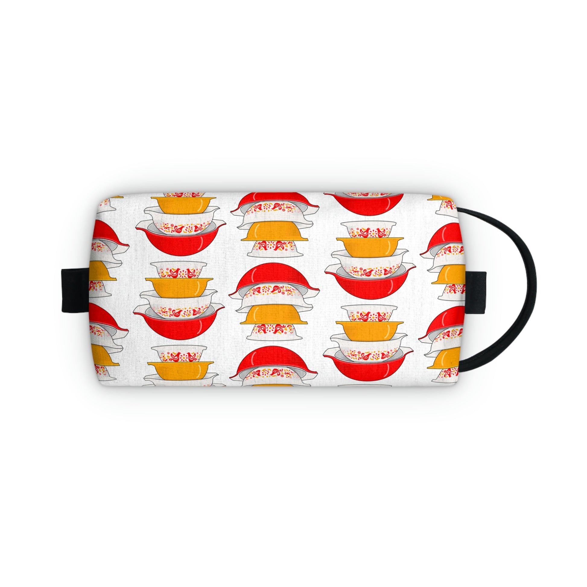The best friend for camping lovers and college dorm residents, this Vintage Pyrex Friendship Pattern toiletry bag will stand out from the crowd thanks to the edge-to-edge sublimation printing technique. It's durable and water-resistant to keep q-tips and cotton pads dry from outside factors. The non-woven black laminated liner makes cleaning quick and easy.