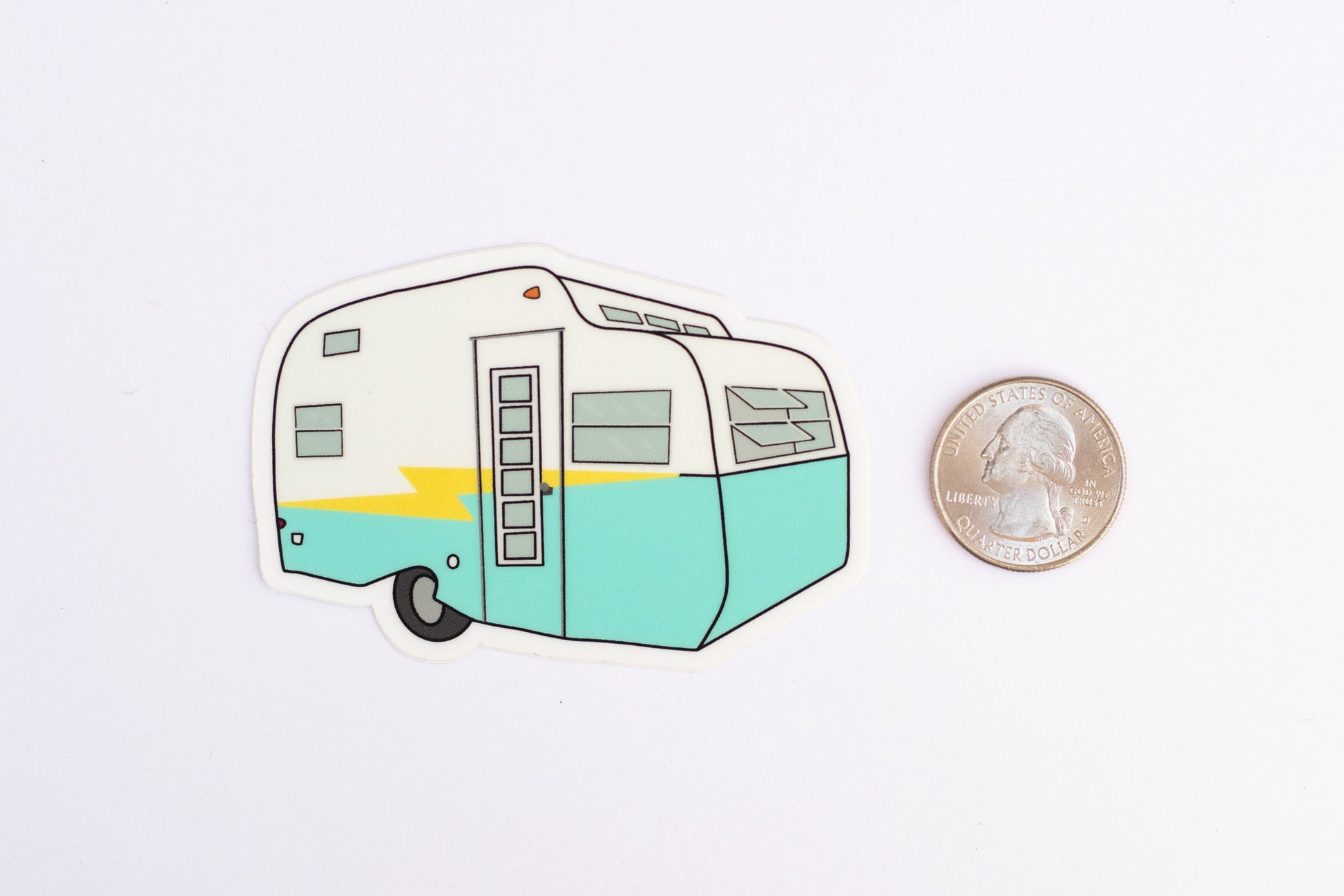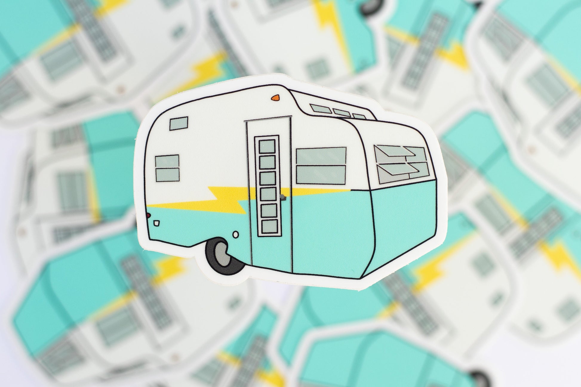 Custom-designed vintage trailer sticker based on the 1960s Yellow/Blue Serro Scotty Travel Trailer! These stickers are great for the outdoors or indoors, they are fun, flexible, and vibrant. A great addition to any laptop, water bottle, or camper!